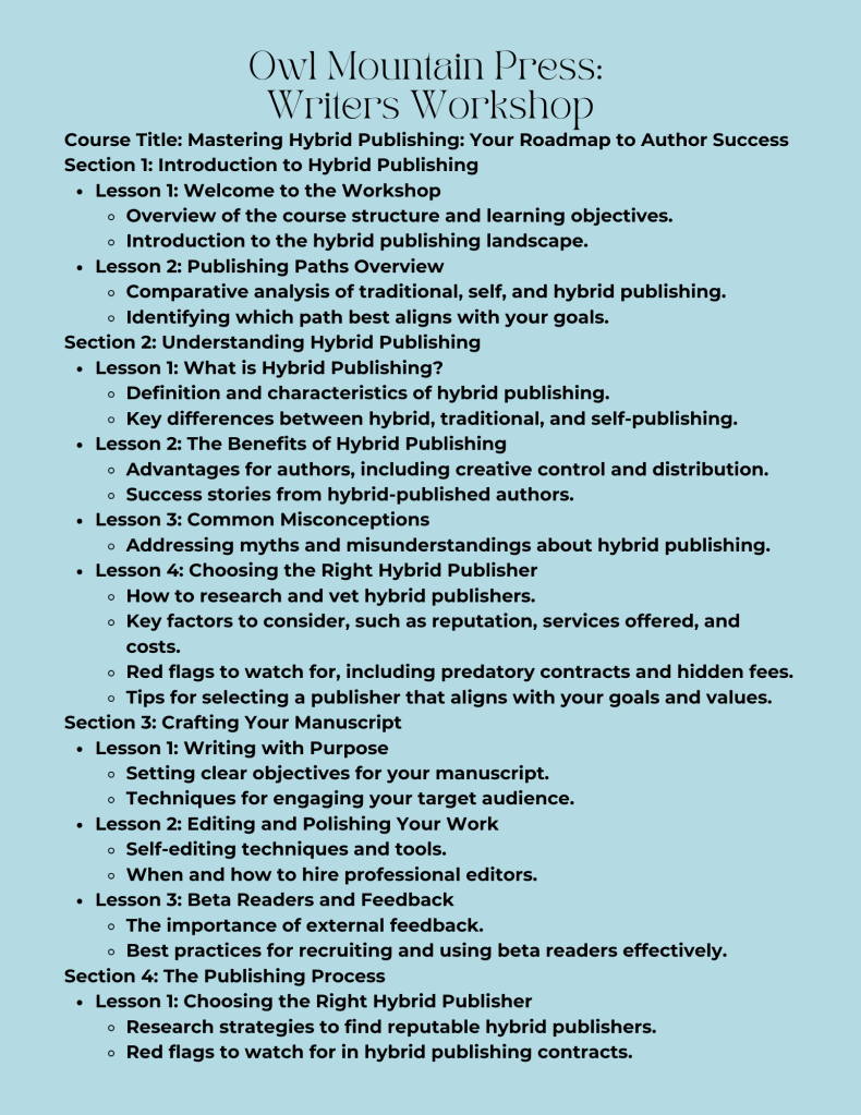 Join Owl Mountain Press for our FREE introductory course: Unlock valuable insights into hybrid publishing at no cost!